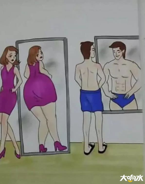 1.从图中我们可以看到,男人和女性的想法永远不一样。女性永远沉浸在自己的自信里,无论他现在是什么样子,他永远觉得自己是最好的。可是女性却完全相反,永远不满足于自己的现状,而且总感觉自己有够漂亮。