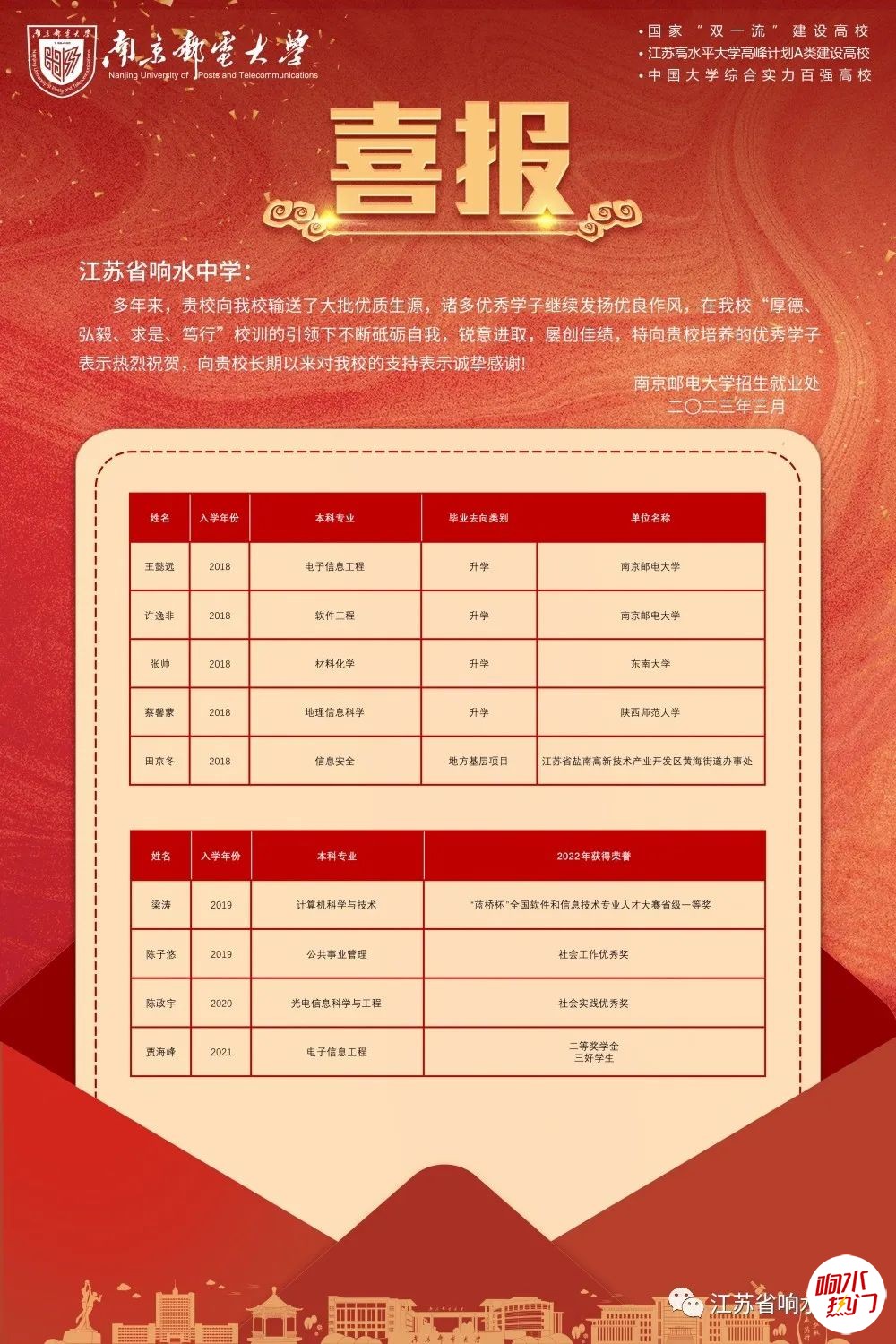 [资讯] 南大、苏大、南邮等大学向“响水中学”发来喜报~