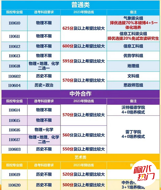 热门专业组09组包括大理科班、人工智能、计算机、软件工程、技术科学试验班等专业,分数会更高一点,鼓励668分及以上考生报考。