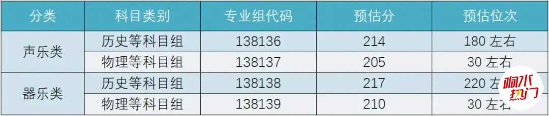 音乐类: 历史类声乐 350 名、206分左右,器乐 500 名、202分左右。物理类声乐40名、204分左右,器乐50名、200分左右报考。