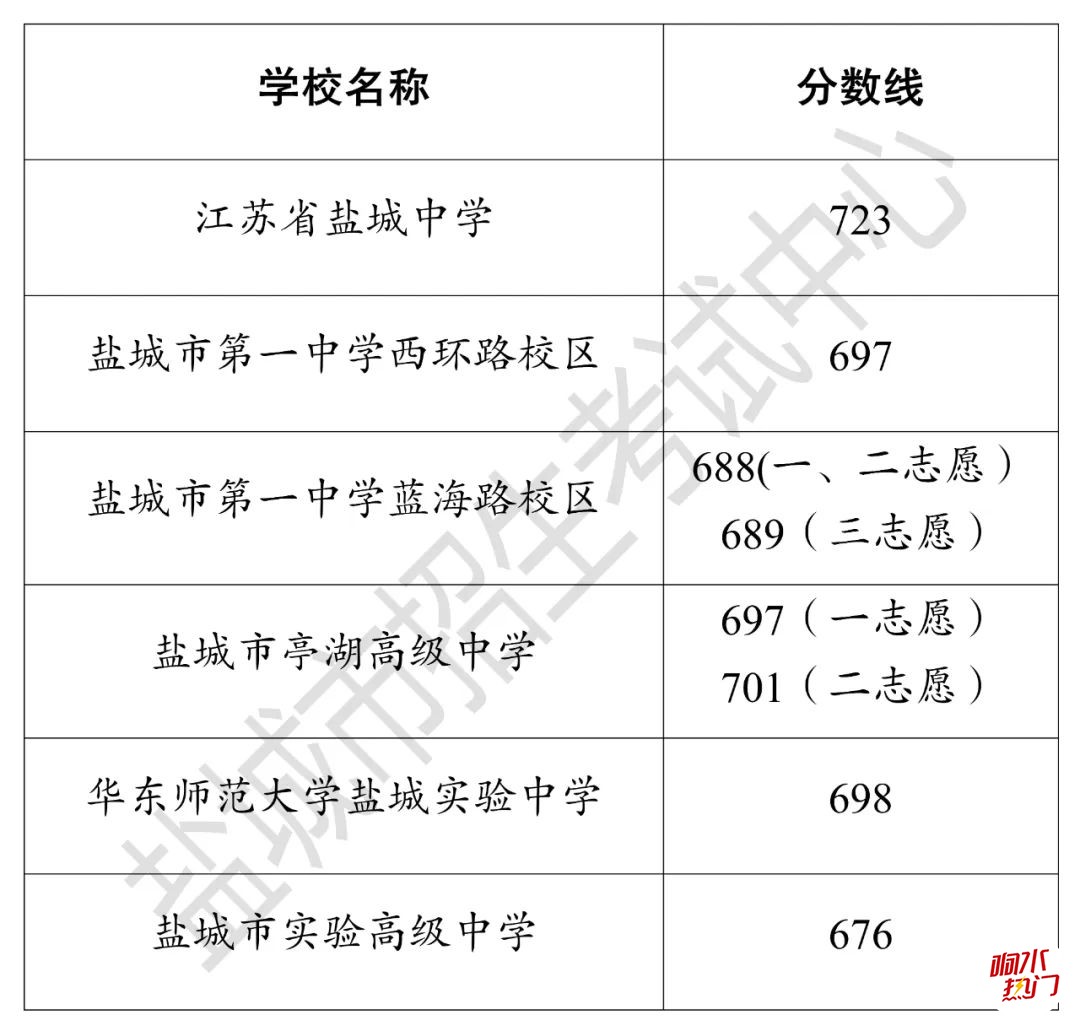 [杂谈] 盐城市区普通高中第一批次录取分数线公布