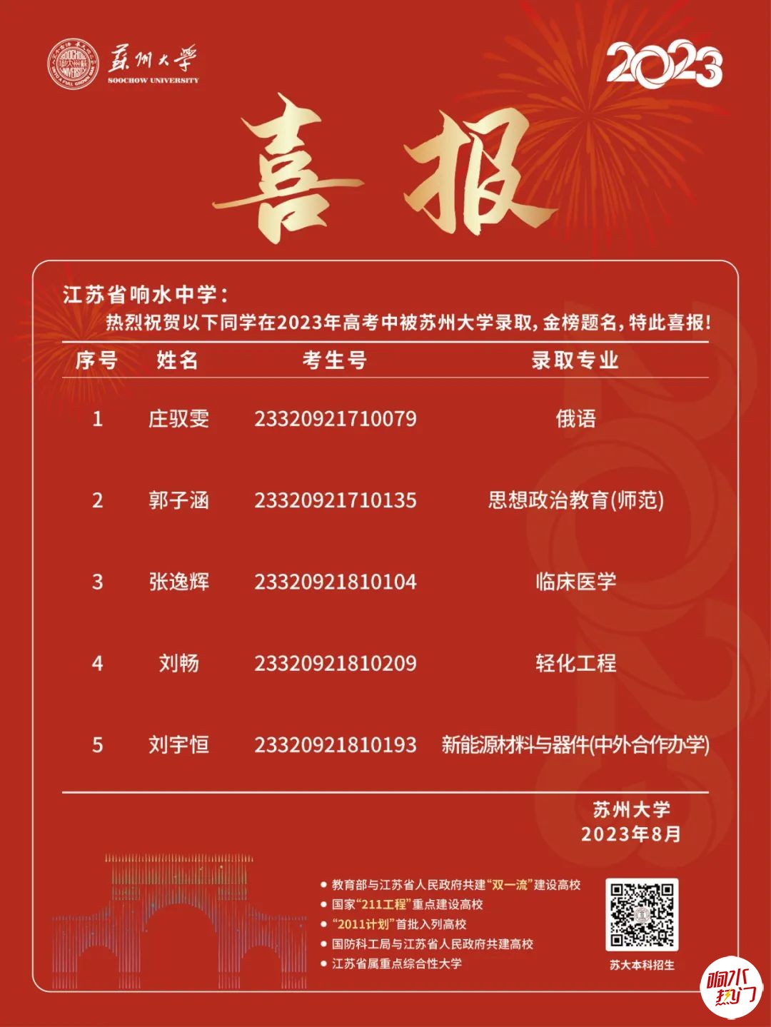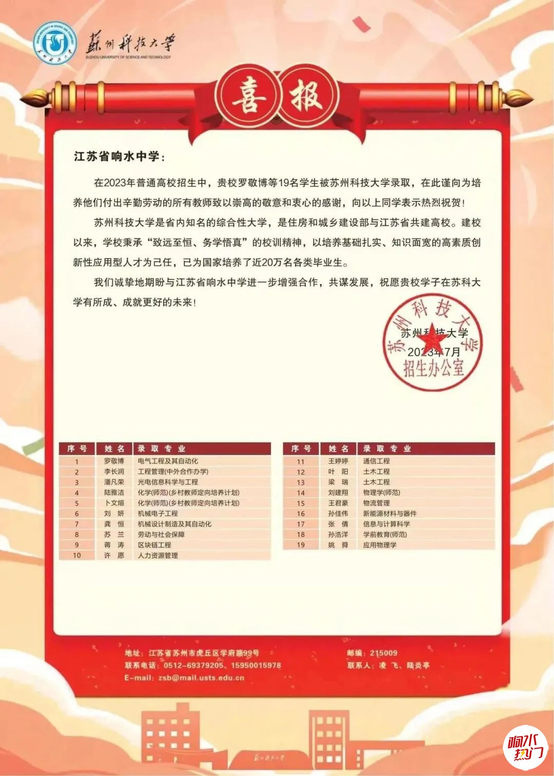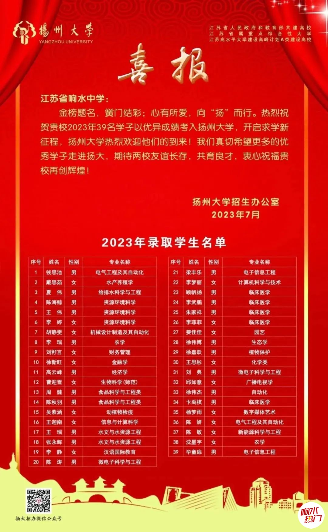 [杂谈] 佳音再续,喜报频传!复旦,苏大,扬大等多所高校向响水发来录取喜报