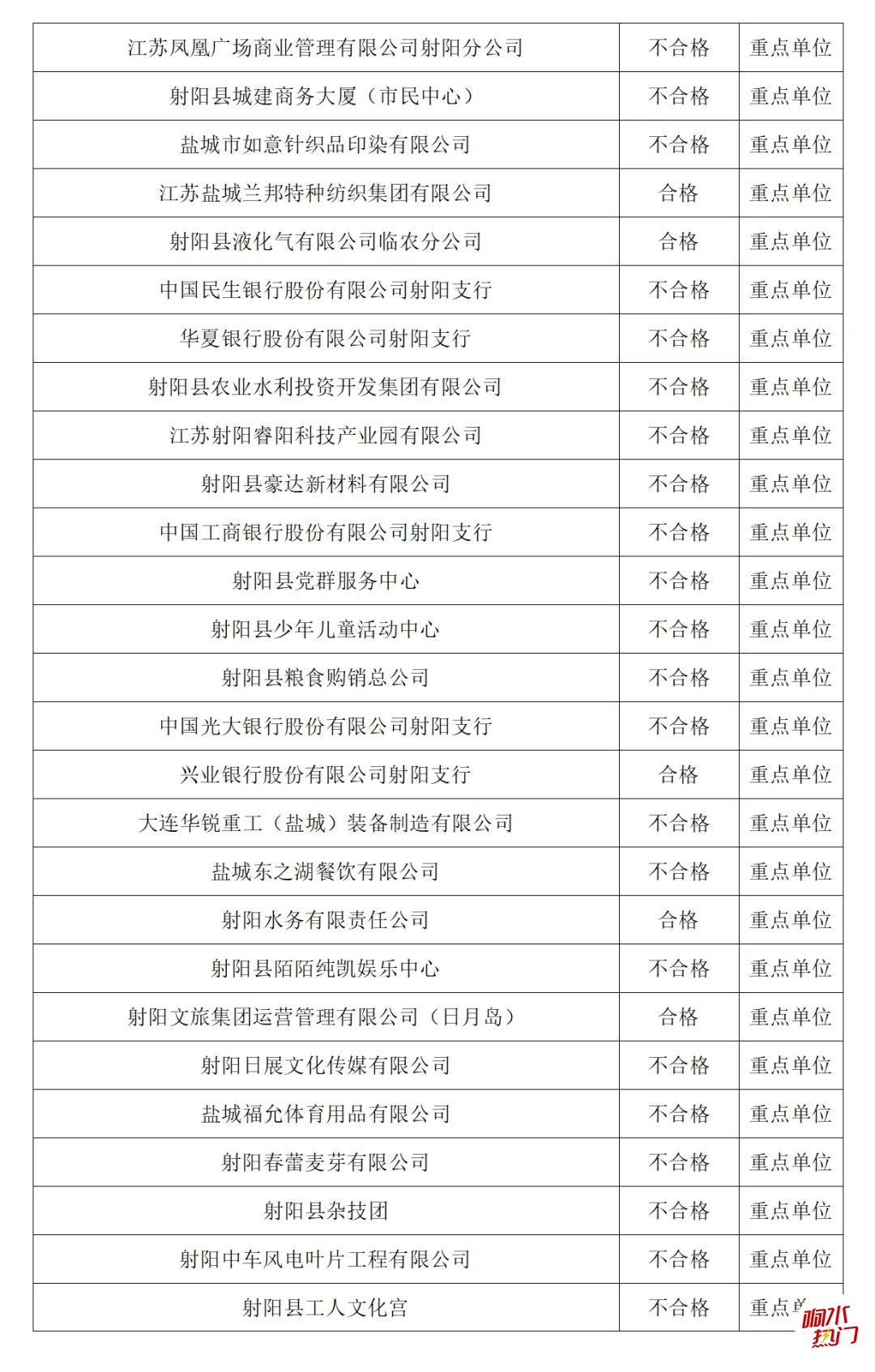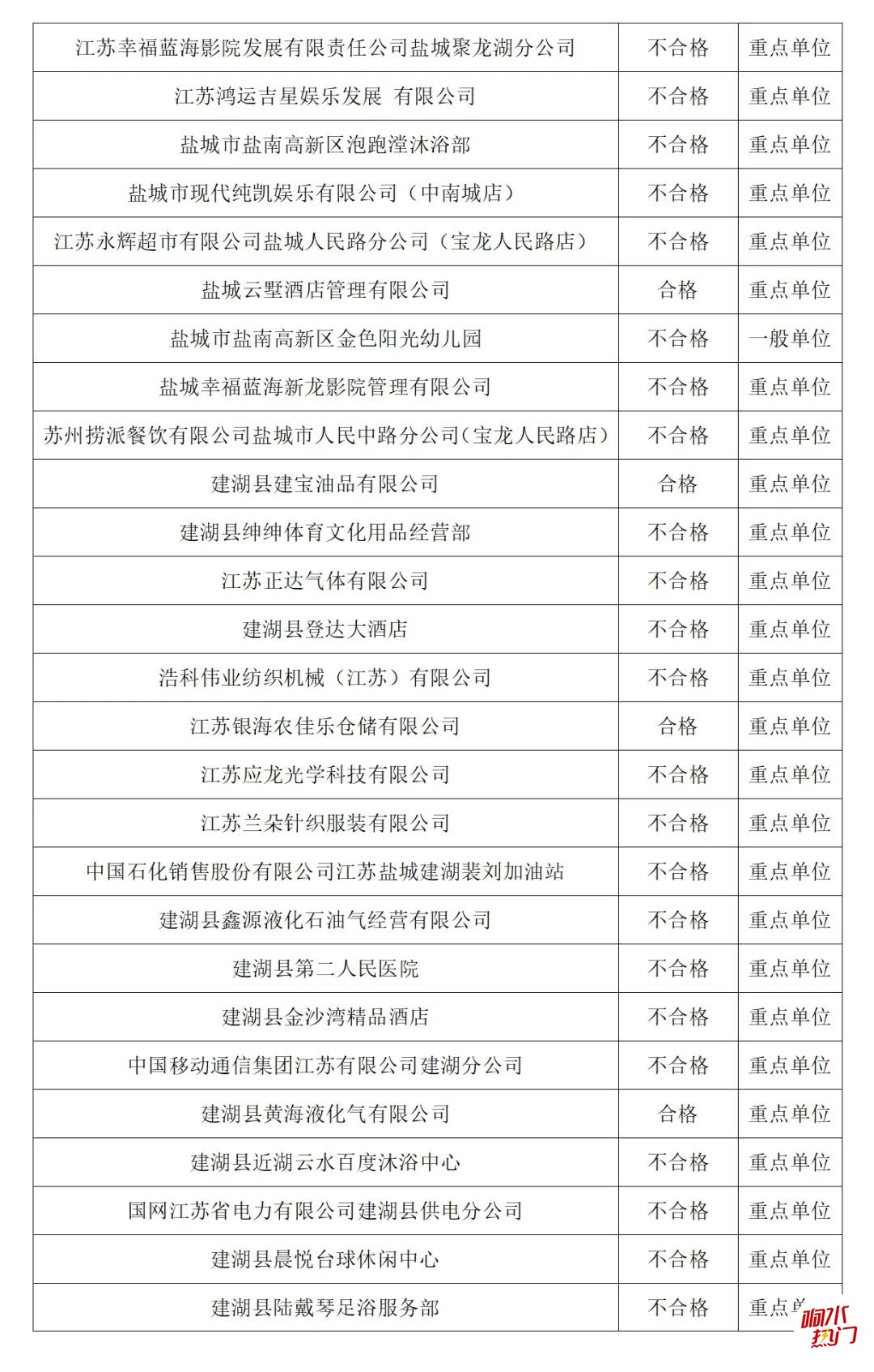 根据《中华人民共和国消防法》和应急管理部消防救援局《关于全面推行“双随机、一公开”消防监管工作的通知》,盐城市消防支队已于2019年10月1日起实行“双随机、一公开”消防监管抽查,现向社会公开2024年3月份单位的抽查结果及2024年4月份全市随机抽查事项清单和抽查计划,请相关单位认真遵守消防法律法规,落实消防安全主体责任。