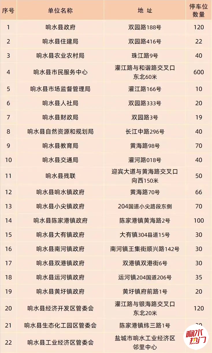 便民惠民!响水22家单位免费开放停车!地址和车位数量已明 ...