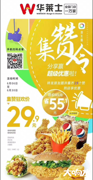 【响水华莱士】严重欺负消费者,虚假广告,集满19个赞可以领取一份原价85现价29.9元的套餐,网友手机朋友圈点了100多个赞,网友今天下班后准备带点给孩子吃,服务员竟然说,活动今天晚上结束,(活动时间:6月6日到6月30日)网友直接当着服务员面拴除朋友圈,作为一个消费者来说,只要你家营业、广告效应必须要履行、难不成就是为了宣传虚假的广告?更让人气愤的是:服务员冷漠的态度说:白天活动太多,晚上结束,直接爱理不理,要么你们在活动时间标志出来,几点到几点、让消费者清清楚楚,既然是活动你们就要遵守活动的规则,否则你们别做活动,做不起就不要做,谁给你们这样权利欺骗消费者,消费者该怎么去维权?提醒大家:点赞需谨慎……