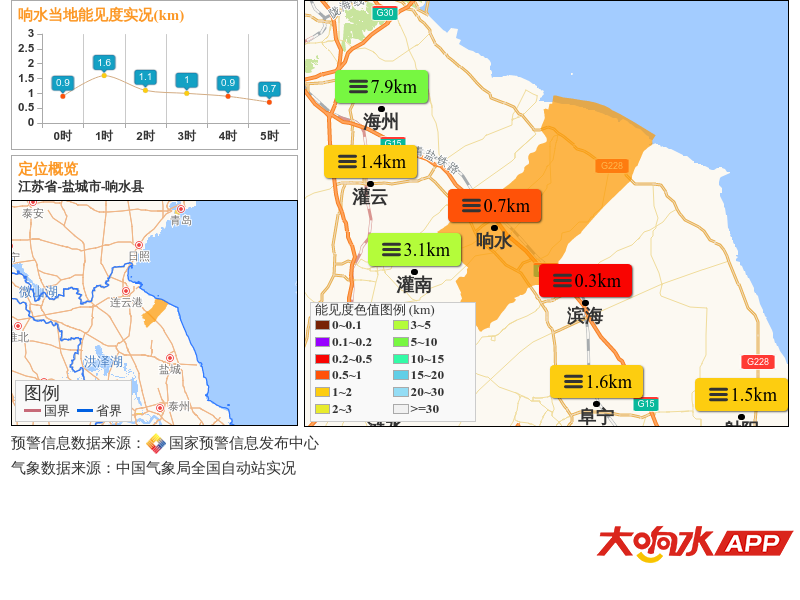 [资讯] 响水县气象台发布大雾橙色预警[Ⅱ级/严重]