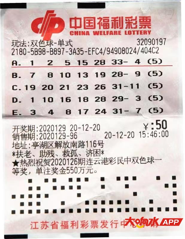 闲暇时间,余先生最大的爱好就是购买福彩双色球。花上50元,买个5注随机,然后在再加5倍,是他每一期雷打不动的“规定动作”。这次中奖的号码,他已经守号一年有余。“不抛弃不放弃,这是我的人生信条”,坐在领奖大厅的余先生,若有所思的说了这一句。
