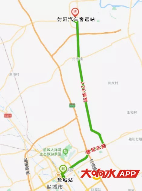 1.线路走向:盐城站、青年路、环保大道、生态大道、建军东路、226省道、射阳汽车站。